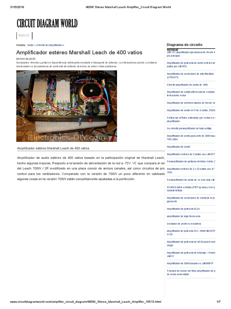 Amplificador de 400W Compl (1).pdf Amplificador de 400W Complementario 1 ... (100w por canal ... from i.pinimg.com Audio amplifier circuit diagram ( part 1 ) all types audio amplifier board circuit diagram. Circuit diagram of audio amplifier. Mini amplifier is a standard amplifier, as well as quality amplifier. Led music level indicator circuit diagram. It is probably the one of the easiest audio amplifiers to build. Since the efficiency is 90% at maximum power, no expensive, bulky heatsinks are required. The circuit has been carefully adjusted Small power portable audio amplifier design requires minimum components utilization and low power consumption, here the 5v usb audio amplifier circuit diagram this amplifier ic ns8002 takes wide range of voltages between 4.0v to 6.0v and it is most suitable for usb powered applications.